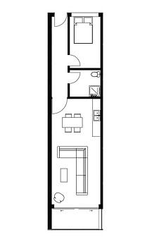 Comfortable 1-bedroom apartment. Apartment contains everything one would need. The enormous sliding doors provide the living room with large amounts of natural daylight.